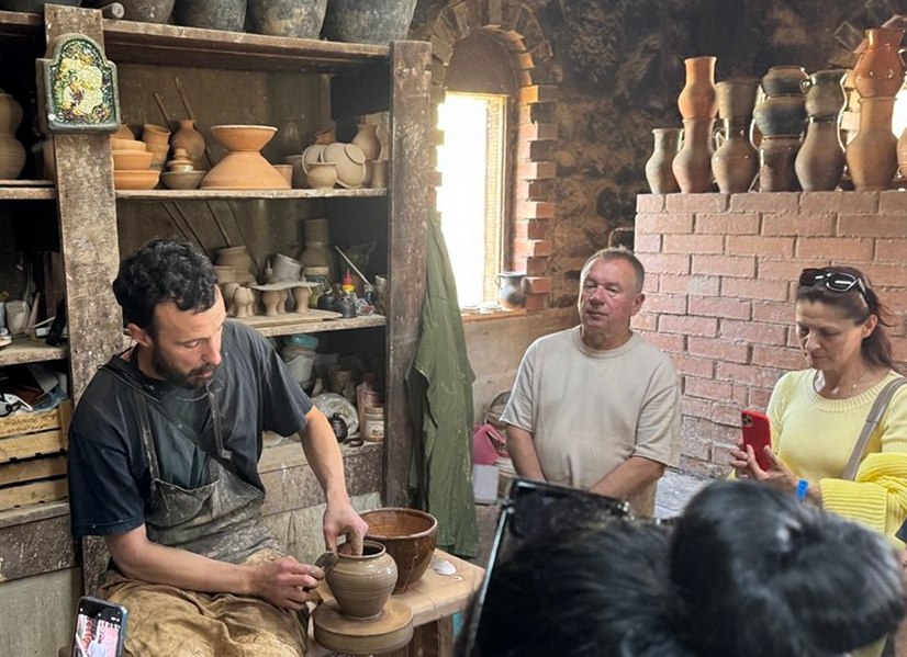 Также приняли участие в традиционных хороводах вокруг костра, осмотрели воссозданную замковую вежу и историческую кузницу, познакомились с процессом гончарного дела в «ганчарне», узнали секреты книгопечатания в «друкарне», изучили историю местной ратуши.