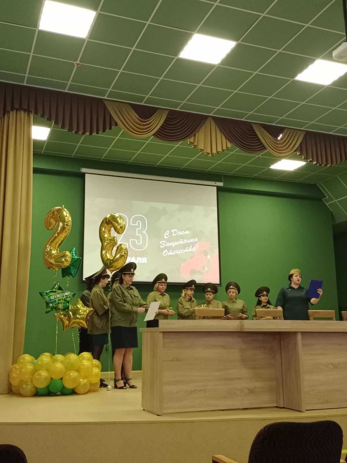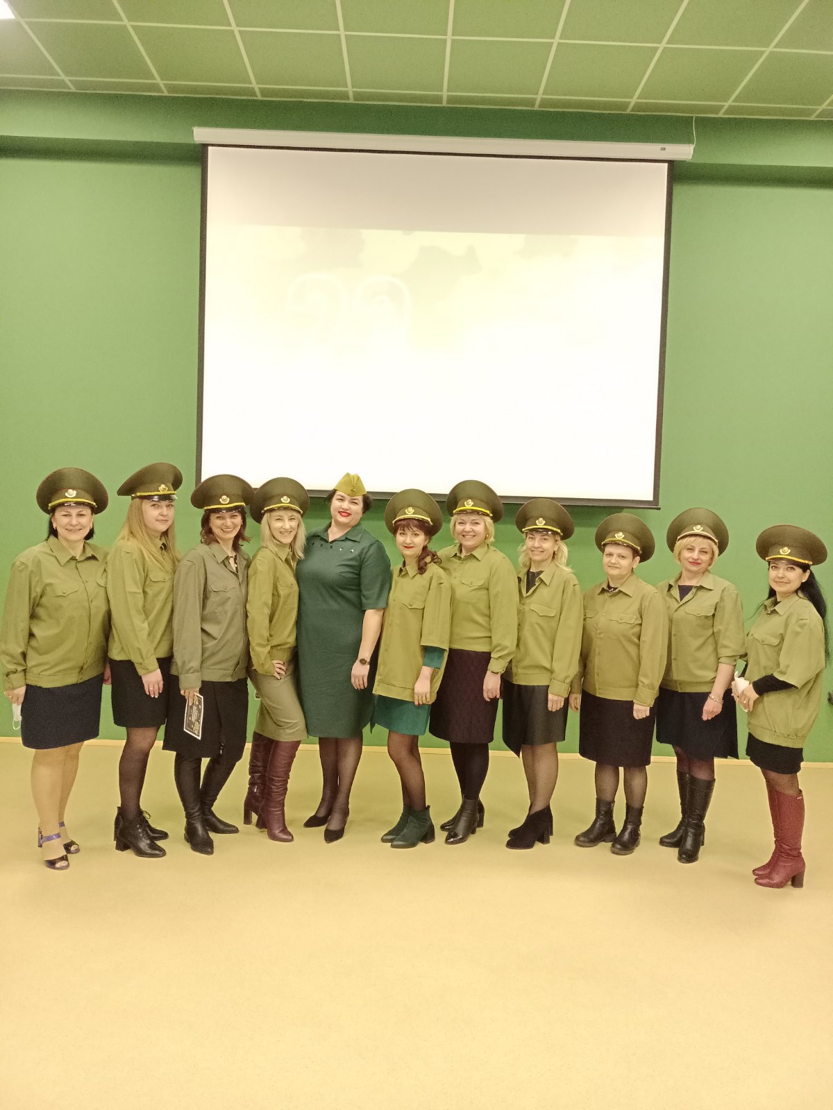 Поздравление началось с марша женского «отряда». Всех присутствующих мужчин в конференц-зале Пинской центральной поликлиники поздравили песней «Катюша» авт. М.Исаковский, написанной в 1938 году.