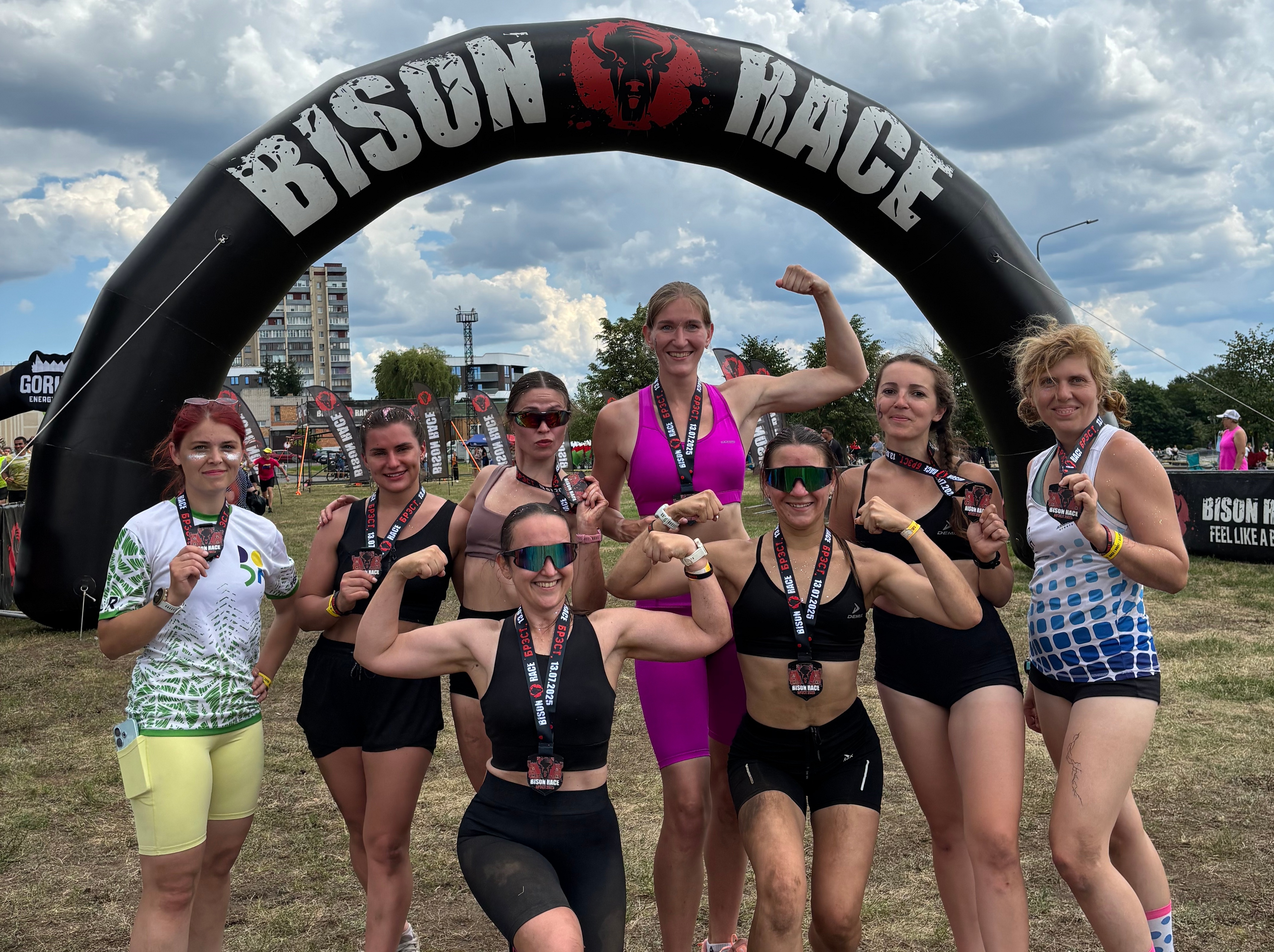 Врач кабинета рентгенокомпьютерной томографии Брестской городской больницы скорой медпомощи Елизавета Борисович (на фото - третья справа) с единомышленниками вышла на командный забег. Дистанция Team Race предусматривала прохождение семикилометровой дистанции также с 20-ю препятствиями за 1 час 40 минут.