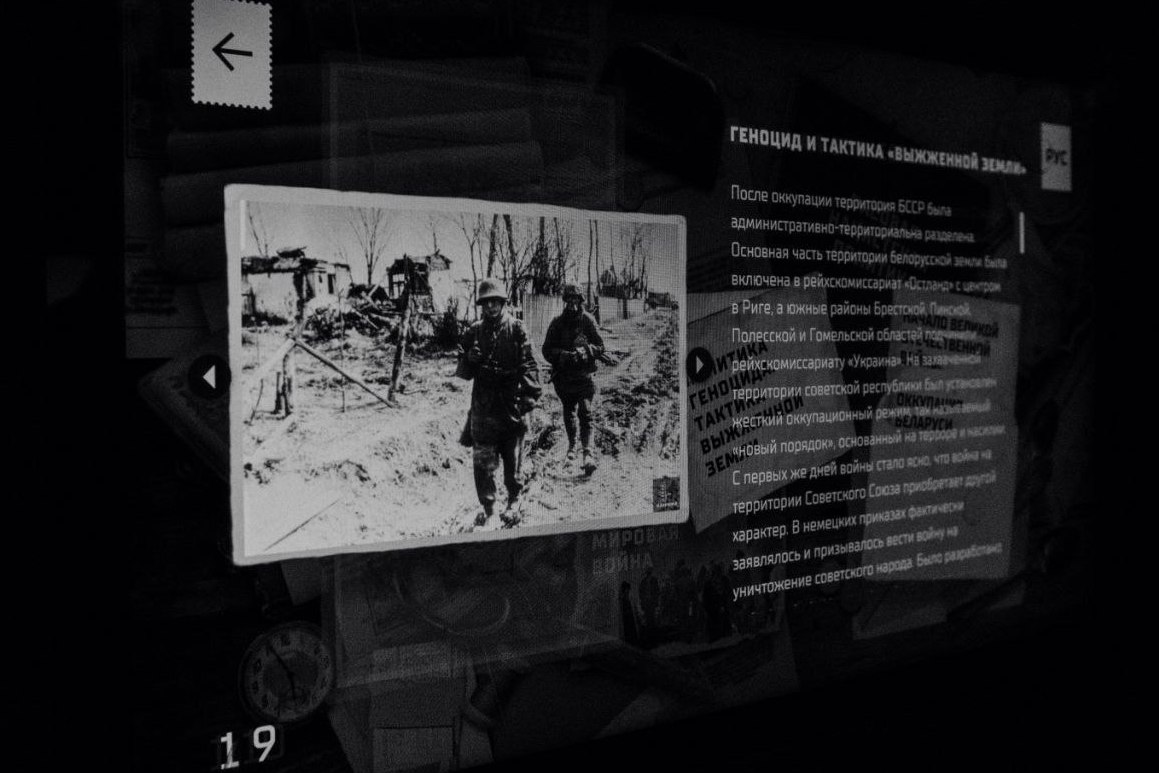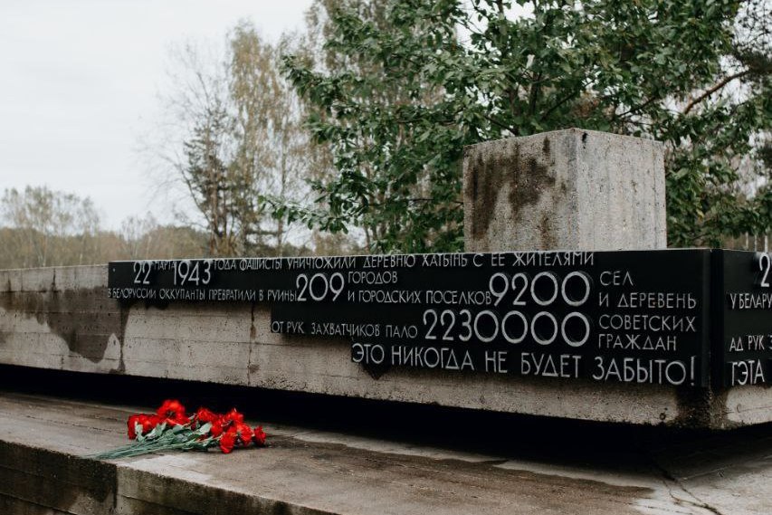 В «Хатыни» экскурсия началась с главного монумента комплекса – разрушенной деревни, символизирующей трагедию сотен белорусских деревень, стертых с лица земли оккупантами. Далее члены профсоюза познакомились с экспозицией музея, рассказывающей о событиях тех страшных дней и судьбах жителей сожженной деревни.